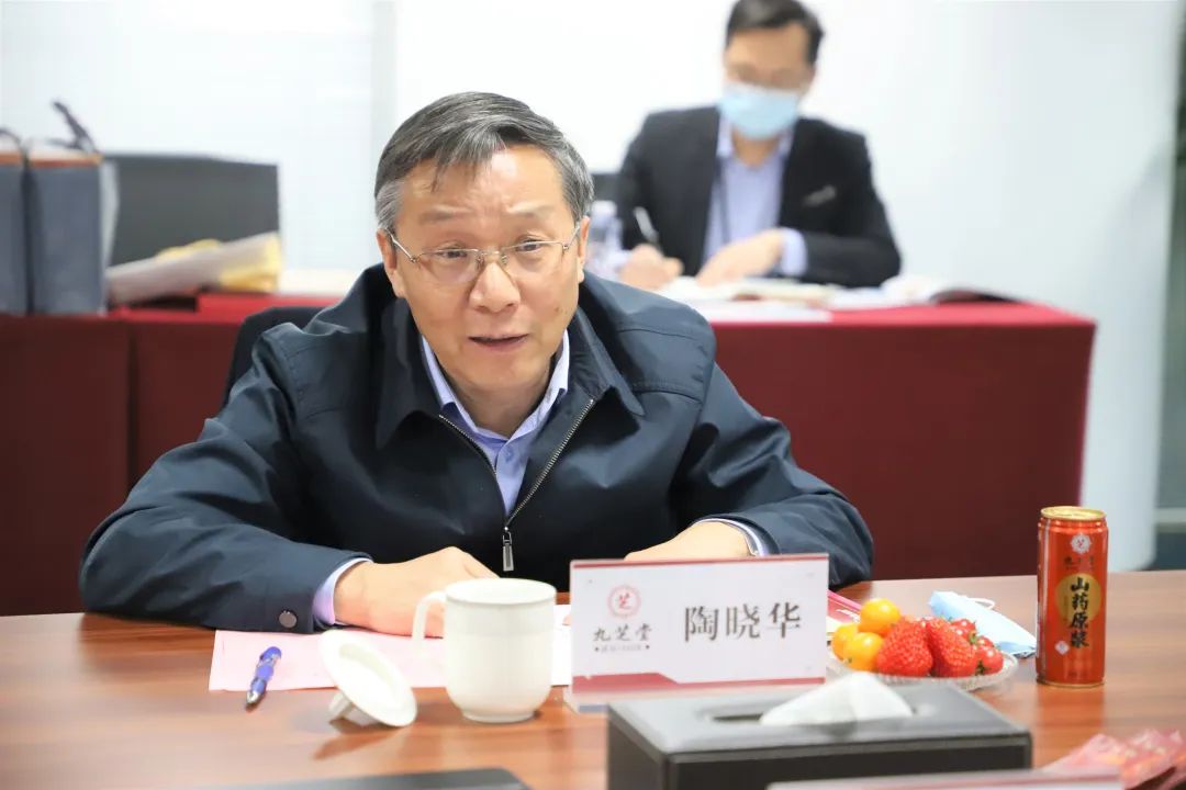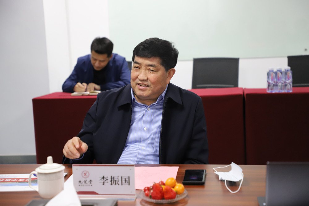座谈开始前,董事长李振国致欢迎辞,首先表达了对于北京中医药大学各位领导的热烈欢迎,并表示与北京中医药大学的各位领导已有过多次交流,双方已经有了初步了解。董事长提到,本次国家发布的《“十四五”中医药发展规划》不仅对企业来说是指导性的文件,对于学校人才培养方面也指明了方向,欢迎高校的各位领导、老师们更多地到九芝堂考察走访,了解九芝堂资源,一方面帮助解决在校生就业问题,缓解就业压力;另一方面,也便于九芝堂更充分地利用高校平台,广纳人才,将事业做好。