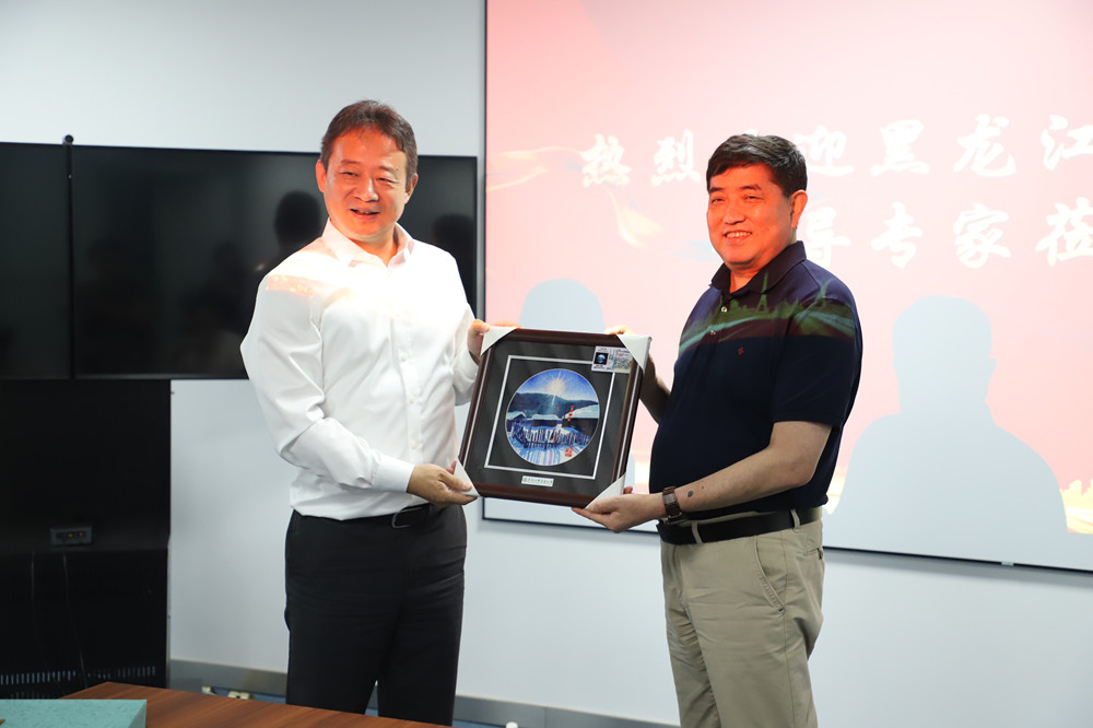 会议最后,郭宏伟校长代表黑龙江中医药大学向九芝堂赠送了距今1300年前的国家级非物质文化遗产——渤海靺鞨绣,寓意通过双方的精诚合作,推动中医药传承创新发展,使中医药这一中华文明瑰宝不断焕发新光彩。