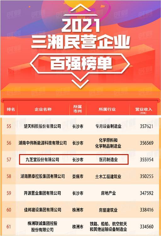 九芝堂入选“2021三湘民营企业百强榜”,是对九芝堂综合实力、社会影响力的充分肯定!作为百年企业,九芝堂立足新时期国民健康需求及自身中医药产业优势,扛起民企的使命与担当,一直致力于传承好、发展好中医药事业,同时也为促进经济社会发展提供了有力保障。