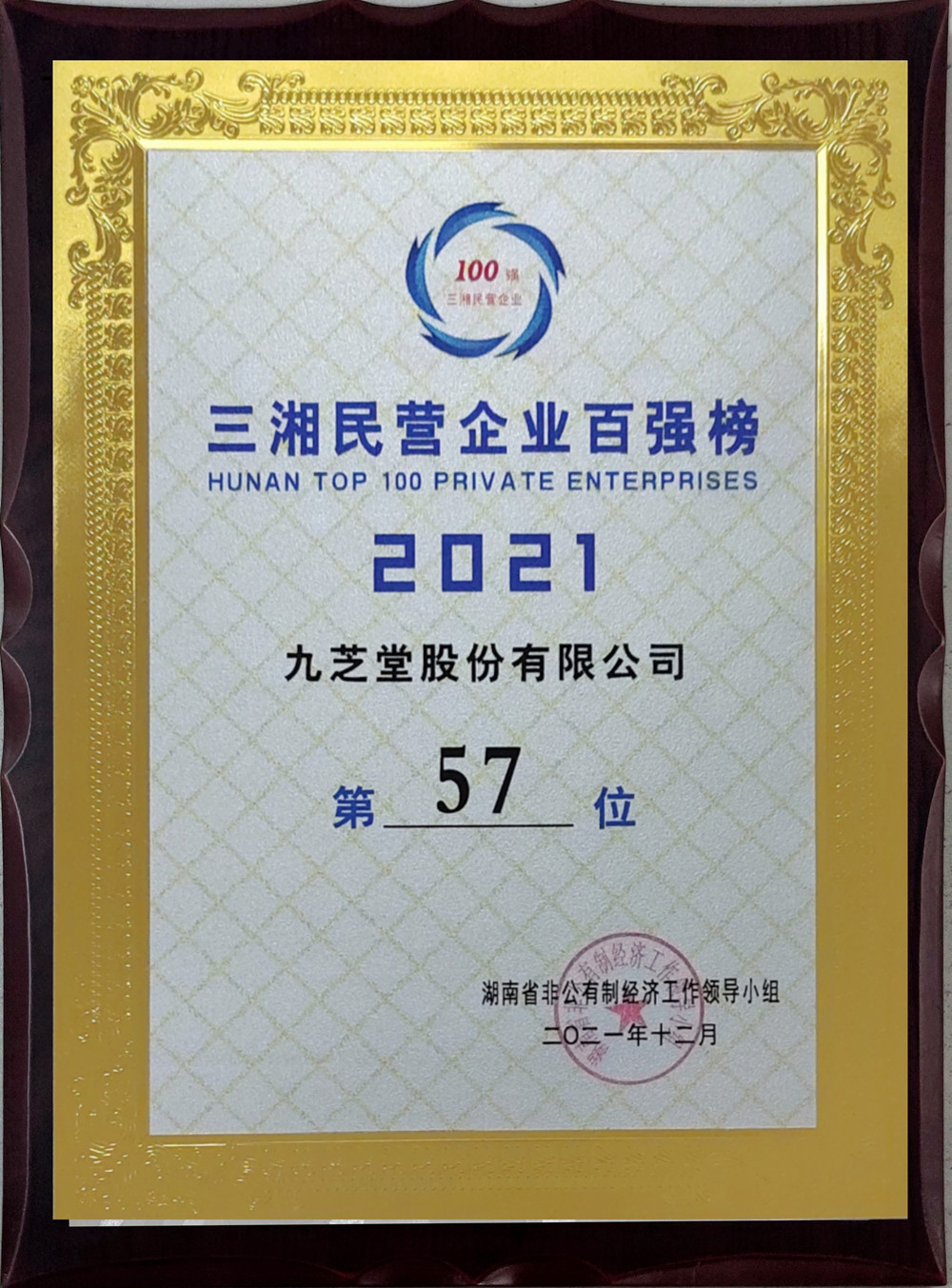 12月28日,第一届“新湖南贡献奖”和2021“三湘民营企业百强榜”在长沙发布,九芝堂荣膺入选“2021三湘民营企业百强榜”!九芝堂股份有限公司总经理徐向平获第一届“新湖南贡献奖”先进个人!