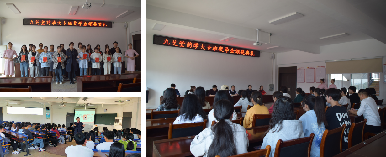 本次颁奖对象为九芝堂药学大专班24名2021年度奖学金获得者,奖金由九芝堂连锁常德分部赞助提供。校企领导一同为本次奖学金获得者颁奖并合影留念。