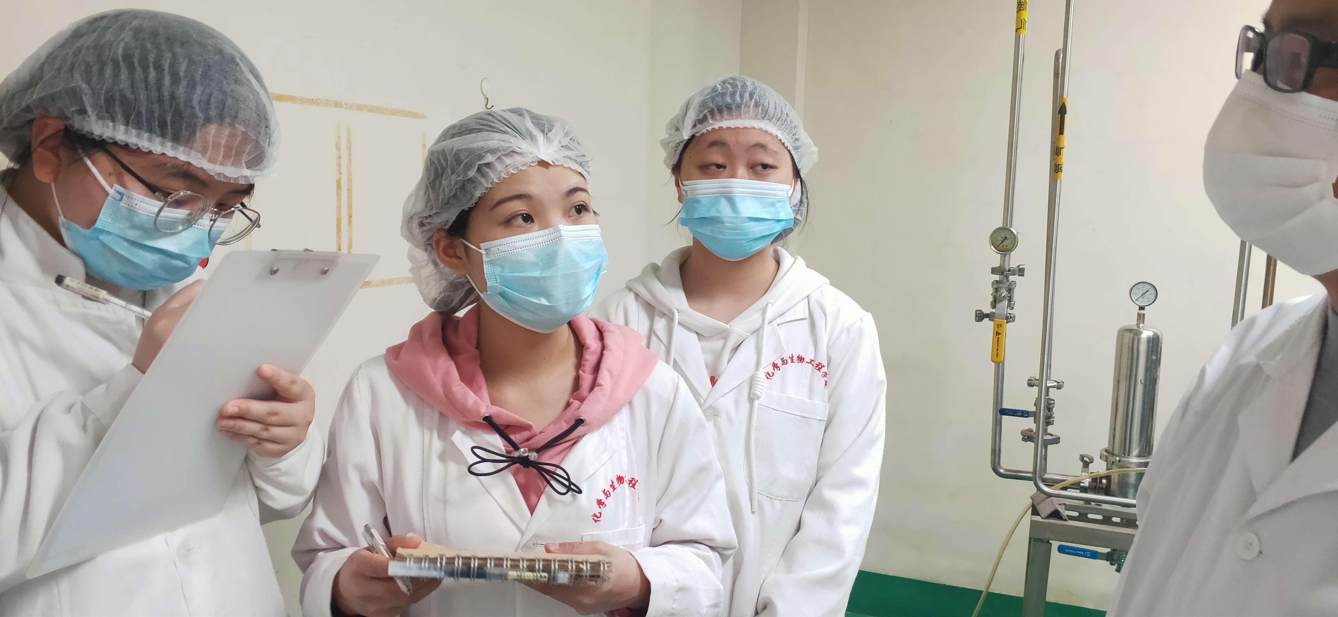 随后,在生产技术部部长肖锋的亲自引领下,全体学员分批次进生产车间实地考察和交流。在带领参观的同时,向学员们详细介绍了车间布局图、工艺及设备原理、先进的管理模式等。参观过程中,新鲜的实物与实用知识的吸引让大家对此产生了浓厚的兴趣,各种问题随即而出,工作人员也就同学们的疑问进行了悉心解答。双方表示,希望有深度合作的资源和契机,共同为医药事业发展贡献力量。