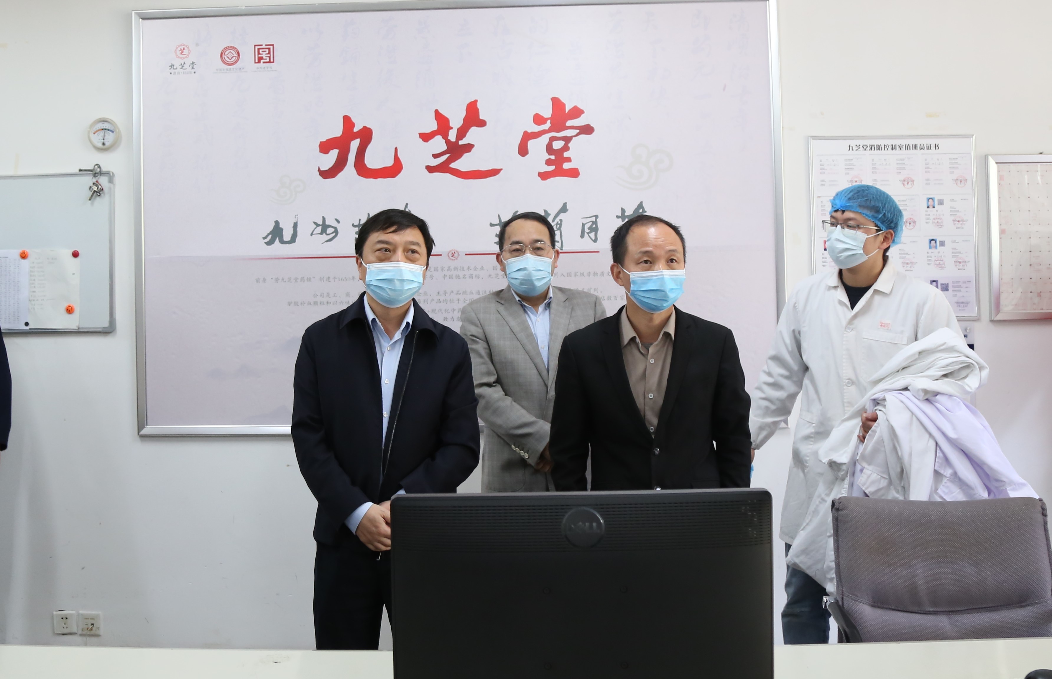 4月18日,长沙市副市长邱继兴带领市交通运输局、市工信局、市科技局相关负责人,赴九芝堂开展安全生产检查督导工作。股份公司总经理徐向平予以接待。