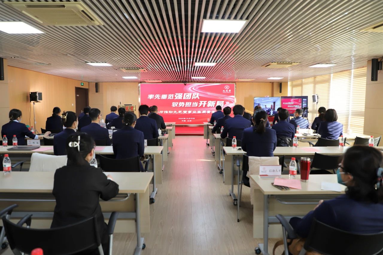 2022年12月29日,九芝堂集团2022年度工作会议在北京集团总部隆重召开。会议以“率先垂范强团队,驭势担当开新局,踔厉推动九芝堂事业高质量发展”为主题,全面回顾2022年各项重点工作,总结成绩、分析不足,安排部署2023年各项工作,为集团决胜“十四五”奠定基础。