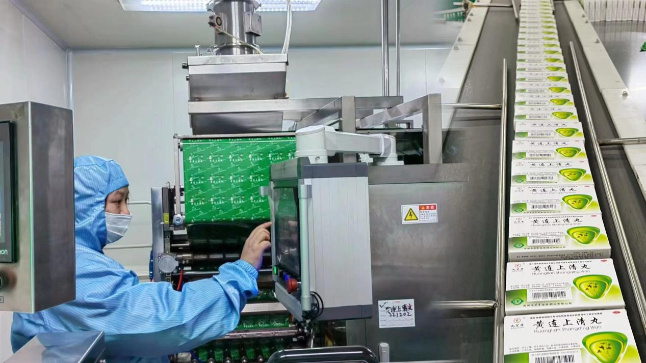 在九芝堂长沙基地,采购供应部紧急梳理目前库存原材料可供生产批数,采购原材料,克服药材价格飞涨等不利因素,积极和供应商协调原材料到货情况,及时反馈生产部门。生产部门积极组织,对产能进行统一协调、统一调配,已将设备产能调到最大,实行机器不停工、员工白中夜三班倒,紧急安排将安宫牛黄丸、补中益气丸、通宣理肺丸等疫情防治药品列为首要生产任务,马力全开、连续生产。抢工期、赶时期,在药材价格飞涨、中药生产周期长等外部不利影响及内部员工确诊人数不断增长的双重压力下,车间内各生产线高速、有序运行,在操作工人与机械制造线的默契配合下,一盒盒药品经过检验合格后被打包、装箱,顺利下线。