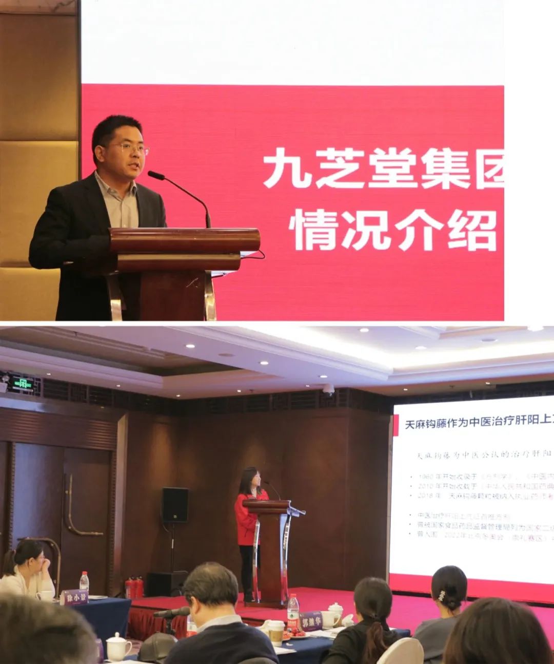 会上,九芝堂股份有限公司副总经理、研发总监务勇圣对九芝堂百年企业文化和公司未来的发展战略做了简单介绍。成都九芝堂金鼎药业有限公司医学市场部部长张燚介绍了天麻钩藤颗粒的处方来源、开展的临床指南/专家共识收录情况,以及开展的药理及临床研究情况。